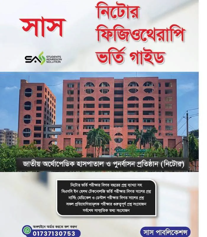 ঢাকা বিশ্ববিদ্যালয়ের চিকিৎসা অনুষদের অধীনে জাতীয় অর্থোপেডিক হাসপাতাল ও পুনর্বাসন প্রতিষ্ঠান (নিটোর), শেরে বাংলা নগর ঢাকায় ২০২৫-২৬ ইং শিক্ষাবর্ষে ৪(চার) বছর একাডেমিক এবং ১ বছর বাধ্যতামূলক ইন্টার্নশীপ সহ সর্বমোট ৫ (পাঁচ) বছর মেয়াদী বি.এসসি ইন ফিজিওথেরাপি কোর্সের প্রথম বর্ষে ছাত্র/ছাত্রী ভর্তির জন্য অনলাইনের মাধ্যমে আবেদনপত্র আহবান করা যাইতেছে। অনলাইন আবেদন http://nitorbd.blgmsoft.com এর মাধ্যমে করিতে হইবে। উপজাতী প্রার্থীদের জন্য একটি আসন এবং মুক্তিযোদ্ধাদের সন্তানদের জন্য দুইটি আসন সংরক্ষিত থাকিবে, এক্ষেত্রে মুক্তিযোদ্ধার সন্তান পাওয়া না গেলে আসন দুইটি মেধার ভিত্তিতে পূরণ করা হইবে।