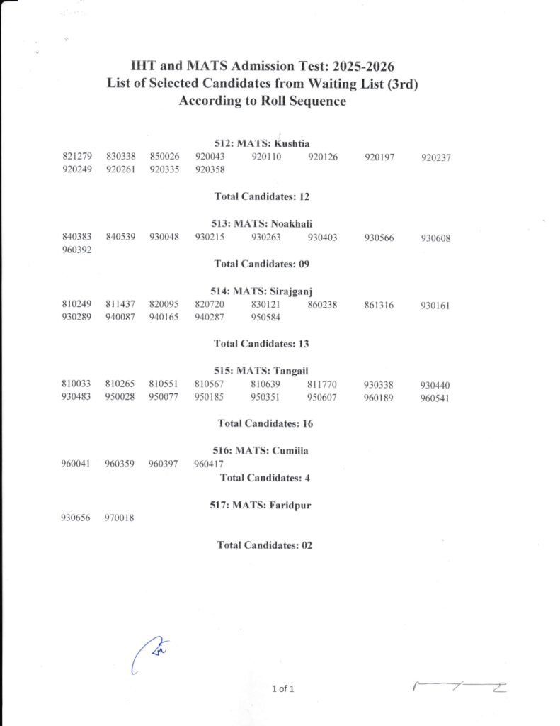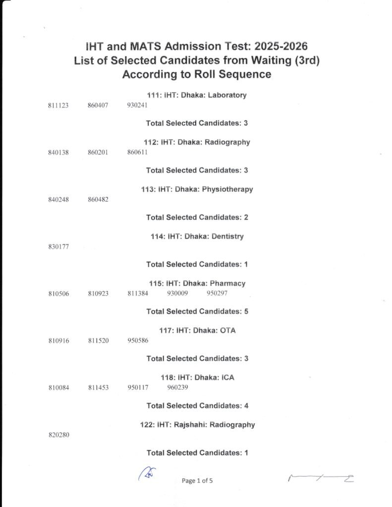 আইএইচটি ম্যাটস ভর্তি পরীক্ষা ২০২৫-২৬ শিক্ষাবর্ষে ৩য় ধাপে ওয়েটিং লিস্ট প্রকাশিত